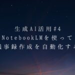 - 生成AI活用#4 Google NotebookLMを使って、議事録を自動で作成しよう!議事録作成、まだ手作業で消耗していませんか? 会議が終わった後、メモを見返しながら議事録を整形する作業。誰もが… 続きを読む: 生成AI活用#4 Google NotebookLMを使って、議事録を自動で作成しよう!